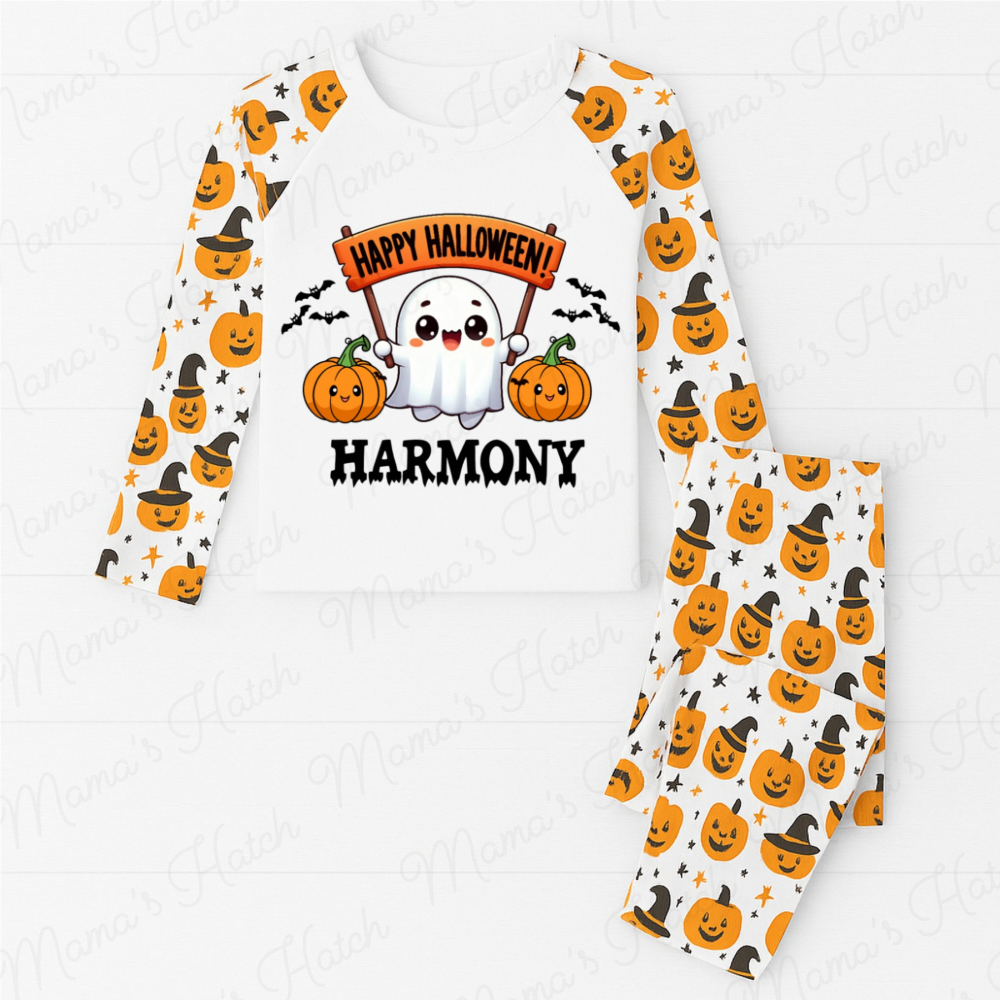 Get your little one ready for a spooktacular Halloween with our Personalised Happy Halloween Ghost Pyjamas! Made from soft and cozy material, these pyjamas will keep your child comfortable all night long. The adorable ghost design and "Happy Halloween" message make these pyjamas perfect for getting into the holiday spirit. Plus, you can personalize them with your child's name for an extra special touch. Whether they're getting ready for bed or enjoying a Halloween movie marathon, these pyjamas will be a favorite for the spooky season.