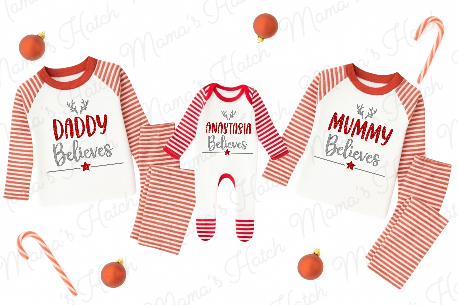 Whether it’s Mummy Believes, Daddy Believes, or your baby’s name in sparkling festive text, each set is made to order just for your family. Perfect for your Christmas Eve traditions, cosy mornings, and those all-important family photos.