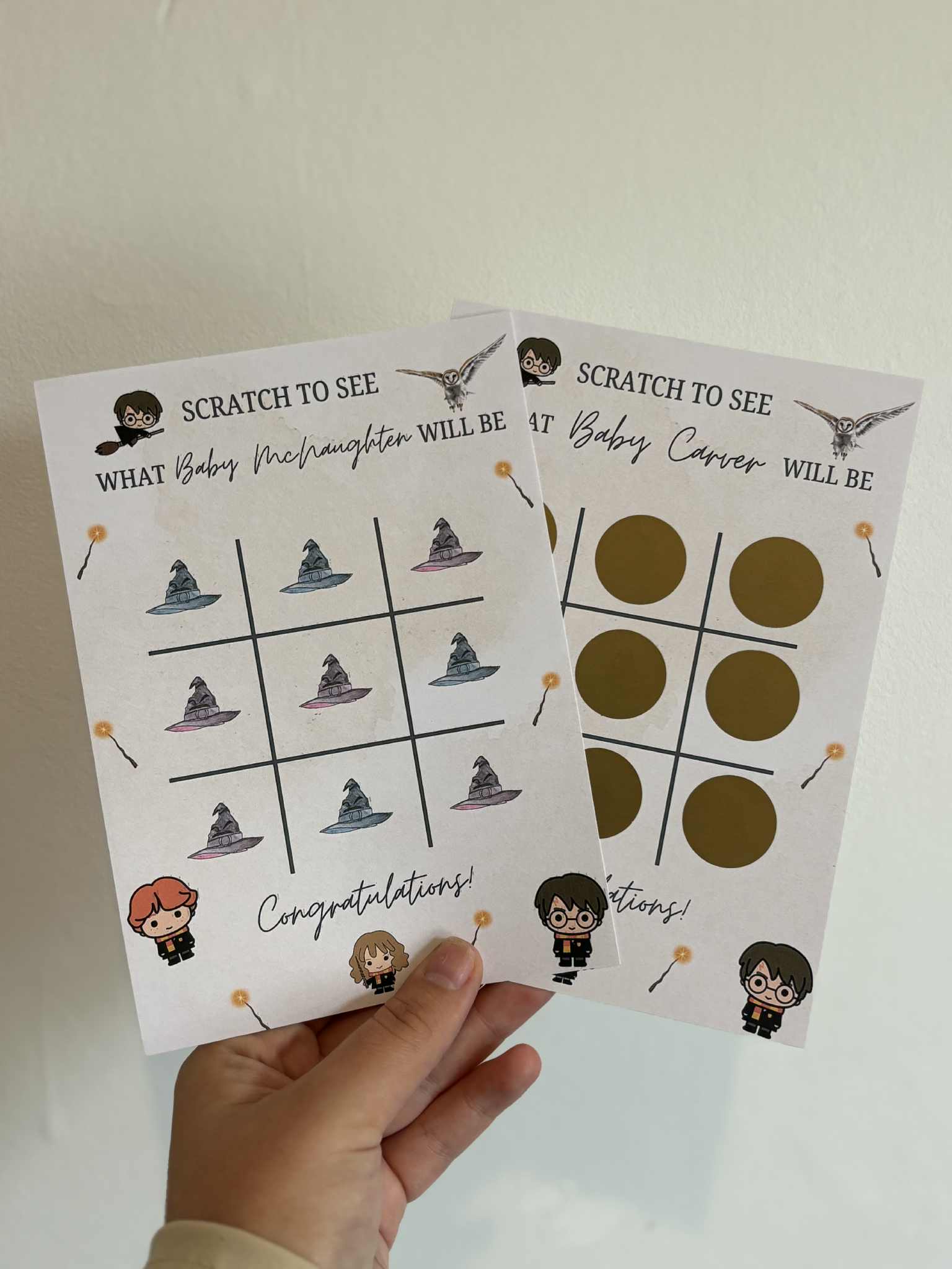 Make your gender reveal even more exciting with this interactive scratch-off Noughts & Crosses game! A fun and unique way to get your guests guessing—will it be Team Pink or Team Blue?